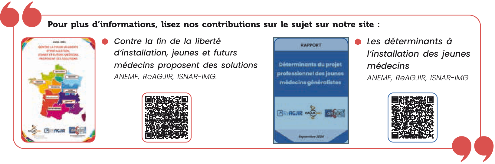 Face à ce constat, certaines évoquent la coercition, c'est-à-dire l'obligation pour les jeunes médecins de s'installer dans des zones sous-dotées. Mais cette approche a montré ses limites ailleurs : elle déplace le problème sans le résoudre. Comme l'ISNAR-IMG l'a souligné dans plusieurs contributions, contraindre les médecins à s'installer dans certaines régions risque d'aggraver la fuite des jeunes médecins vers d'autres modes d'exercice ou vers l'étranger.