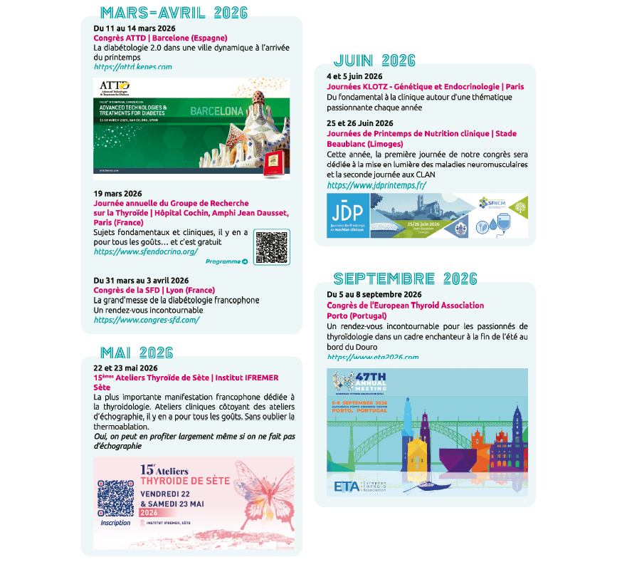 La liste est certainement incomplète mais reflète bien la richesse de formation de notre spécialité. Si vous entendez parler, assistez ou organisez une formation, n'hésitez pas à nous en faire part… mais aussi et surtout si vous découvrez des “perles” qui gagneraient à être connues. Écrivez-nous à [email protected].