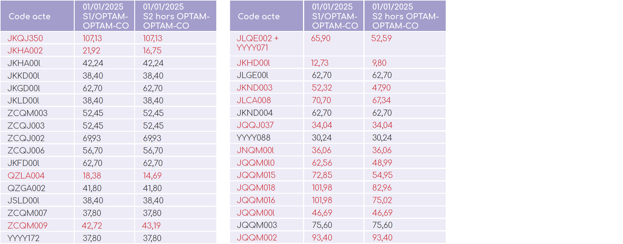 • Le facteur K est à 25 % pour les S1 et S2 adhérant à OPTAM-ACO et S2 non OPTAM/OPTAMACO ou S2 OPTAM si tarif opposable.