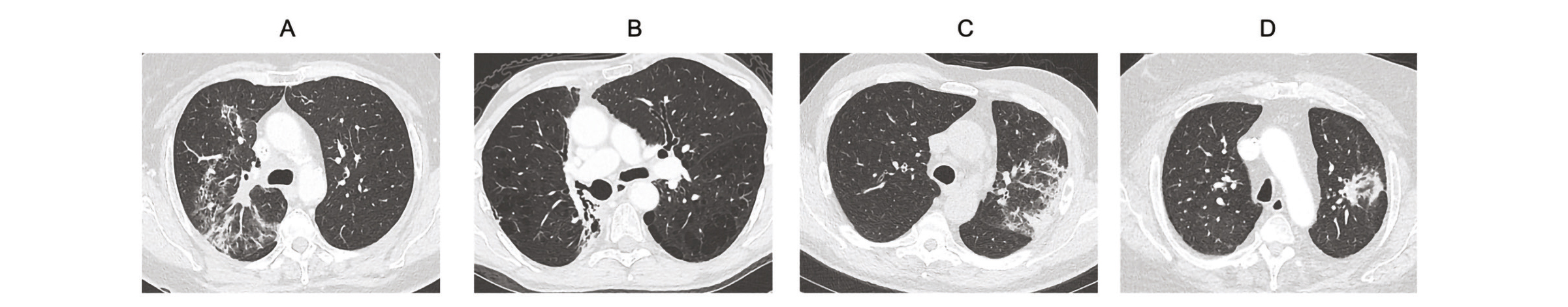 Bien que non systématique, une bronchoscopie avec lavage broncho-alvéolaire réalisée chez les patients ayant une fonction respiratoire suffisante peut être utile pour le diagnostic différentiel avec une lymphangite carcinomateuse, une infection, un saignement ou une hypersensibilité médicamenteuse.