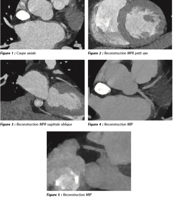 Il est décidé de ne pas aller en salle de cathétérisme, mais de réaliser un scanner cardiaque synchronisé à l'ECG dont voici quelques coupes.