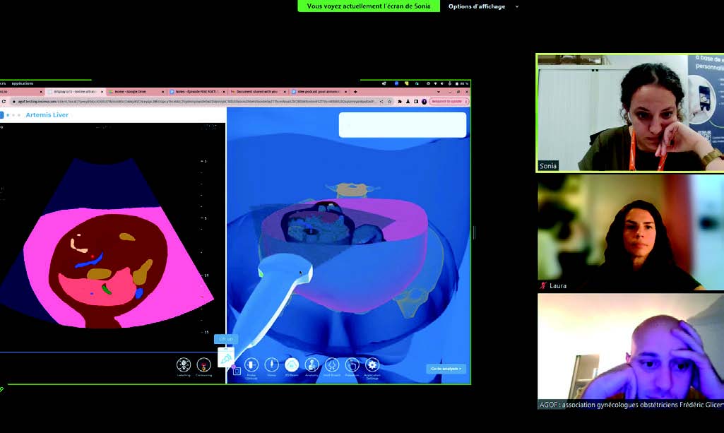 Frédéric : En 2022, un sondage a été réalisé auprès des référents de l'AGOF dans toutes les subdivisions révélant que 65 % des jeunes gynécologues obstétriciens ont recours à une formation théorique en ligne pour l'échographie fœtale. Après études, les formations disponibles sur le sujet sont en grande majorité payantes et peu accessibles, créant ainsi une distance entre les formateurs et les utilisateurs.
