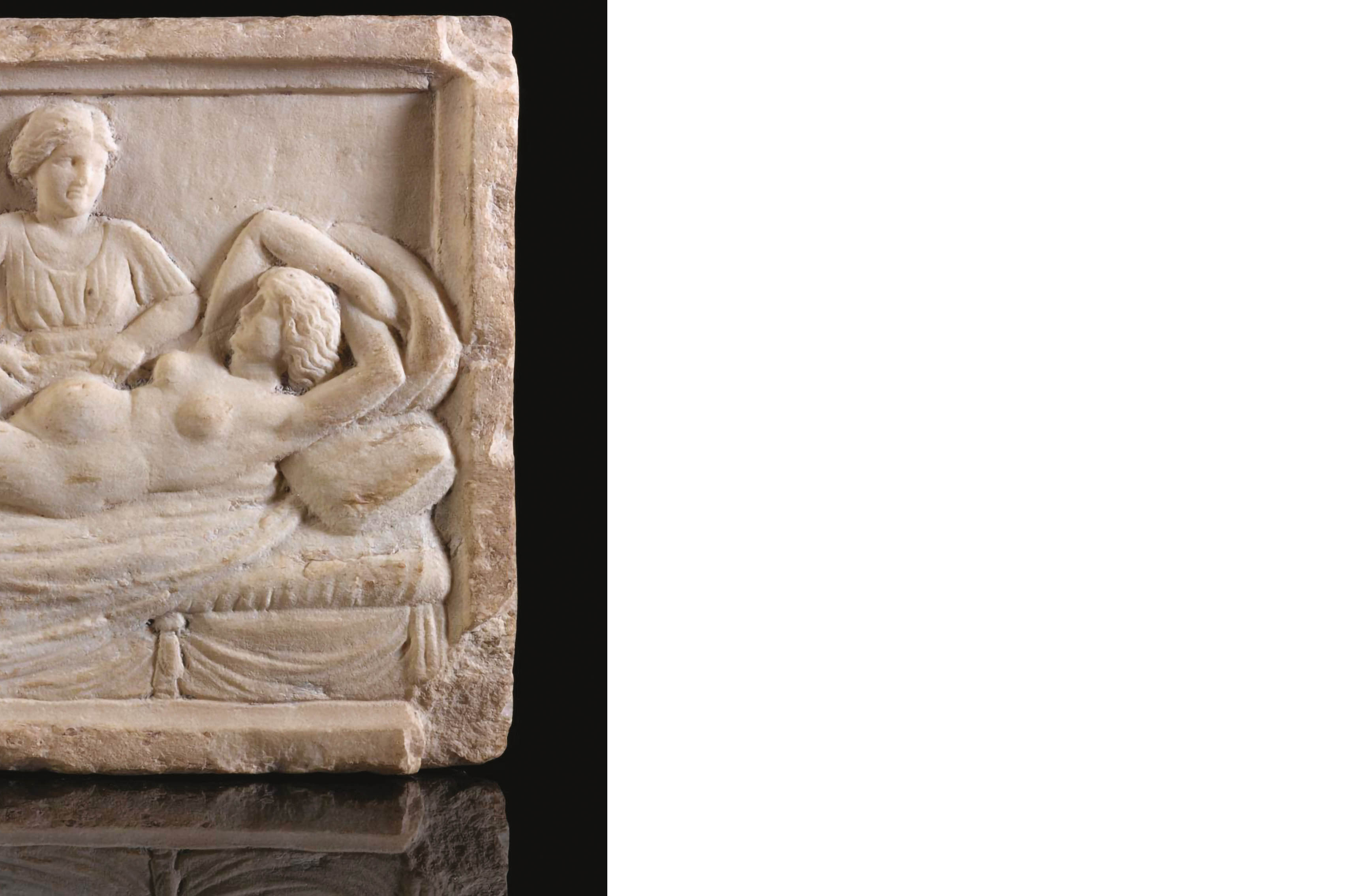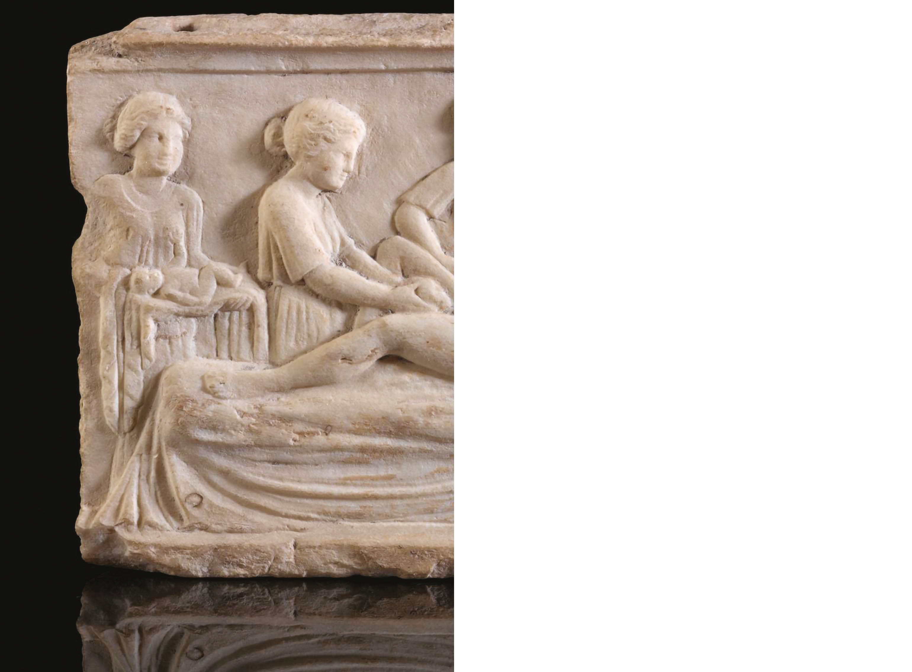 Plaque de marbre montrant une scène d'accouchement, romaine, Collection Sir Henry Wellcome / Science Museum Group, Londres