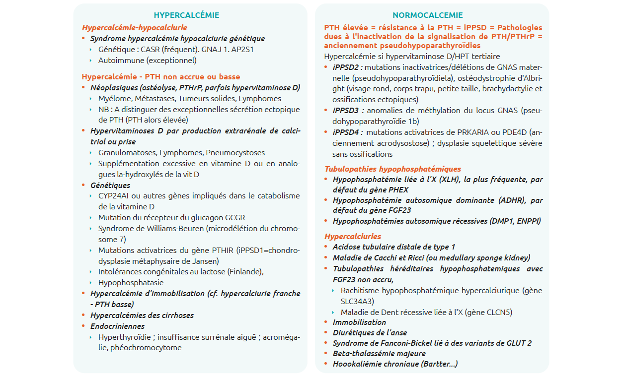 L'HPP normocalcémique concerne 0,1 à 9 % des patients. Pour l'affirmer, il faut rechercher et éliminer :