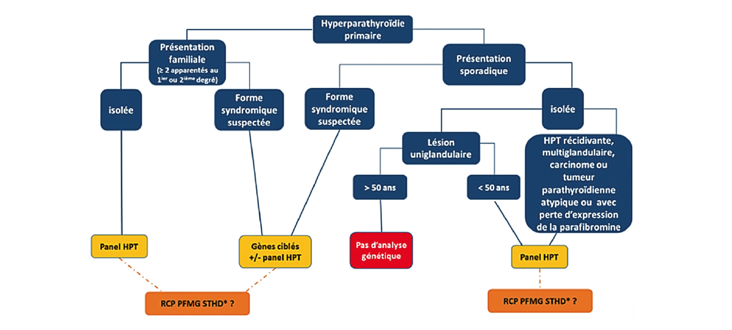 HPT : hyperparathyroïdie ; PFMG : Plan France Médecine Génomique ; RCP : réunion de concertation multidisciplinaire ;