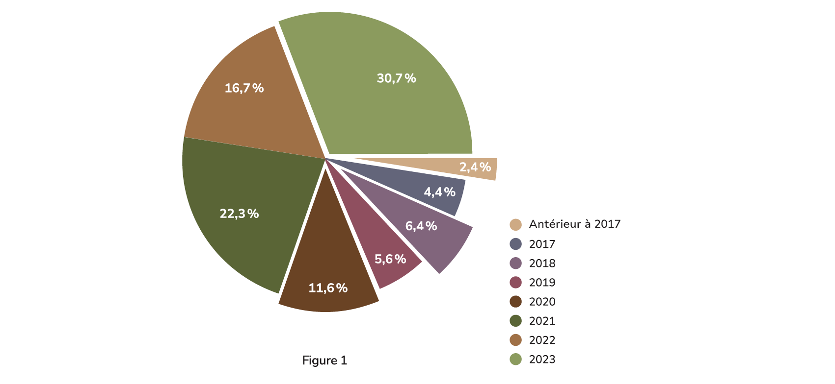 La représentativité territoriale et dans le temps était assurée. En effet, les répondants provenaient de toutes nos subdivisions, avec un nombre de réponses proportionnel au nombre d'internes par subdivision. Toutes les promotions étaient représentées (cf. Fig. 1). À cet égard, nous tenons à remercier les référents locaux de l'association qui ont permis la diffusion large de cette enquête. Ils sont les garants de la représentativité de la FDVF à l'échelle nationale.