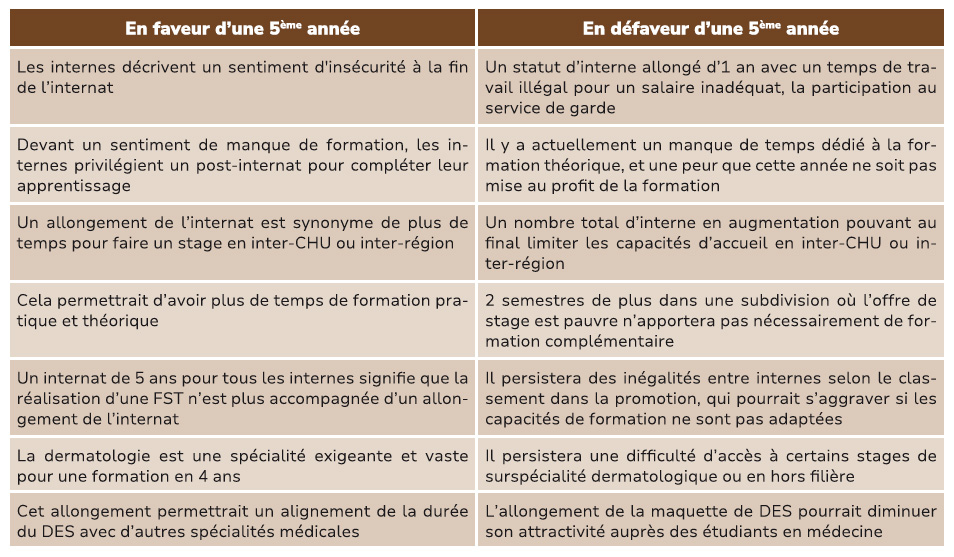 Il nous apparaît important de mettre en lumière que l'allongement de la durée de DES présente certains avantages, mais ne saurait répondre à toutes les problématiques rencontrées au cours de l'internat de Dermatologie-vénéréologie :