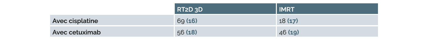 Tableau 1 : Taux de mucite sévère (grade 3-4) selon la technique de radiothérapie, sans PBM