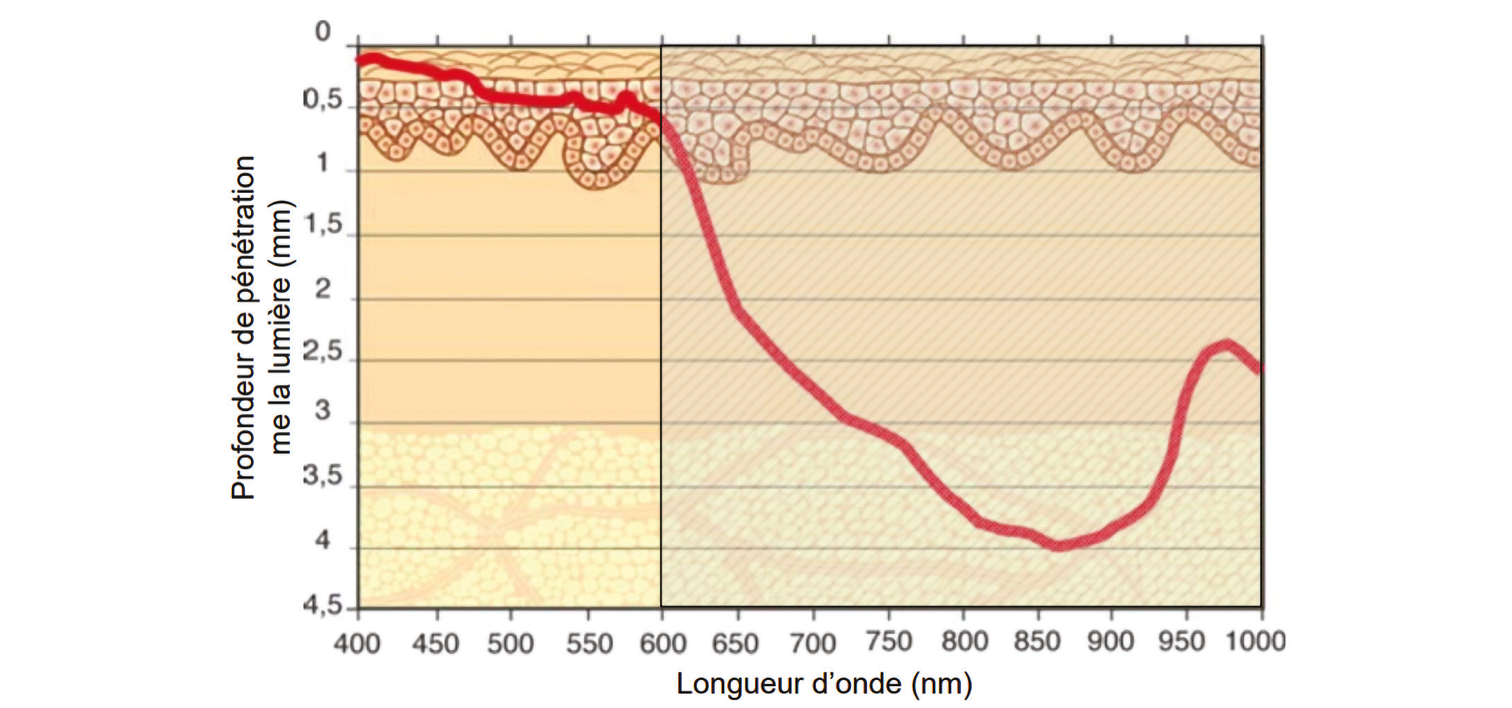 Figure 1 : Profondeur de la pénétration selon la longueur d'onde (15)