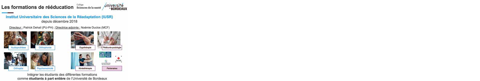 • Masso-kinésithérapie (3 IFMK : IFMK du CHU Bordeaux, IFMK Croix-Rouge Compétence Nouvelle-Aquitaine de Bègles et IFMK du CH de Dax-Côte d'Argent)