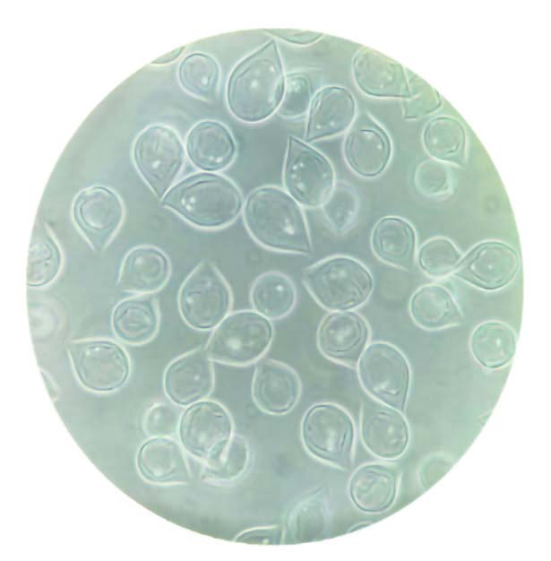 Figure 4 : Capsules d'alginate avec au sein des LT stimulés à J0 de l'encapsulation (grossissement x 100).