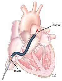 Son principe de fonctionnement est celui d’une vis d’Archimède montée dans un cathéter placé à travers la valve aortique qui aspire le sang dans le ventricule gauche (VG) et le renvoie dans l’aorte ascendante.