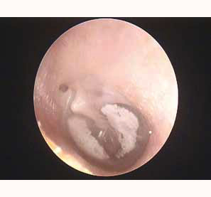 Réponse : Tympanosclérose antérieure et postérieure. Pas de traitement. Il s'agit de séquelles d'otites sans conséquences.
