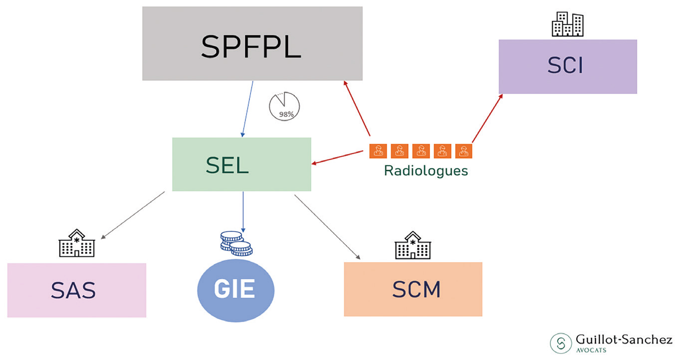 Cette réalité économique explique l'évolution profonde du paysage radiologique libéral ces dernières décennies, où l'exercice collectif est devenu la norme. Les structures se sont progressivement complexifiées, passant de simples Sociétés Civiles de Moyens (SCM) à des ensembles multisociétés intégrant Sociétés d'Exercice Libéral (SEL), sociétés de plateau technique (souvent sous forme de Sociétés par actions simplifiée, SAS), et parfois des structures holding (SPFPL, sociétés de participations financières de professions libérales).