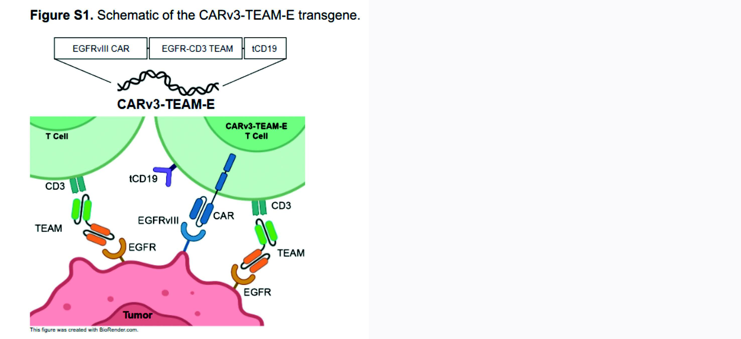 Un précédent essai clinique en 2017 avait évalué un CAR-T-EGFRv3 sans activité TEAM. La tolérance et sécurité de ce CAR-T était bonne mais aucune réponse radiographique n'avait été observée, et les cellules tumorales à la récidive exprimaient la protéine EGFR de type « sauvage » avec une infiltration intra-tumorale importante par des lymphocytes T régulateurs suppressifs. C'est pour surmonter ces résistances que les chercheurs ont développé ce CARv3-TEAM-E qui cible donc, répétons-le, l'EGFRvIII à travers un CAR de deuxième génération tout en sécrétant des molécules d'anticorps engageant les lymphocytes T contre l'EGFR de type « sauvage », qui n'est pas exprimé dans le cerveau normal mais est presque toujours exprimé dans le glioblastome.