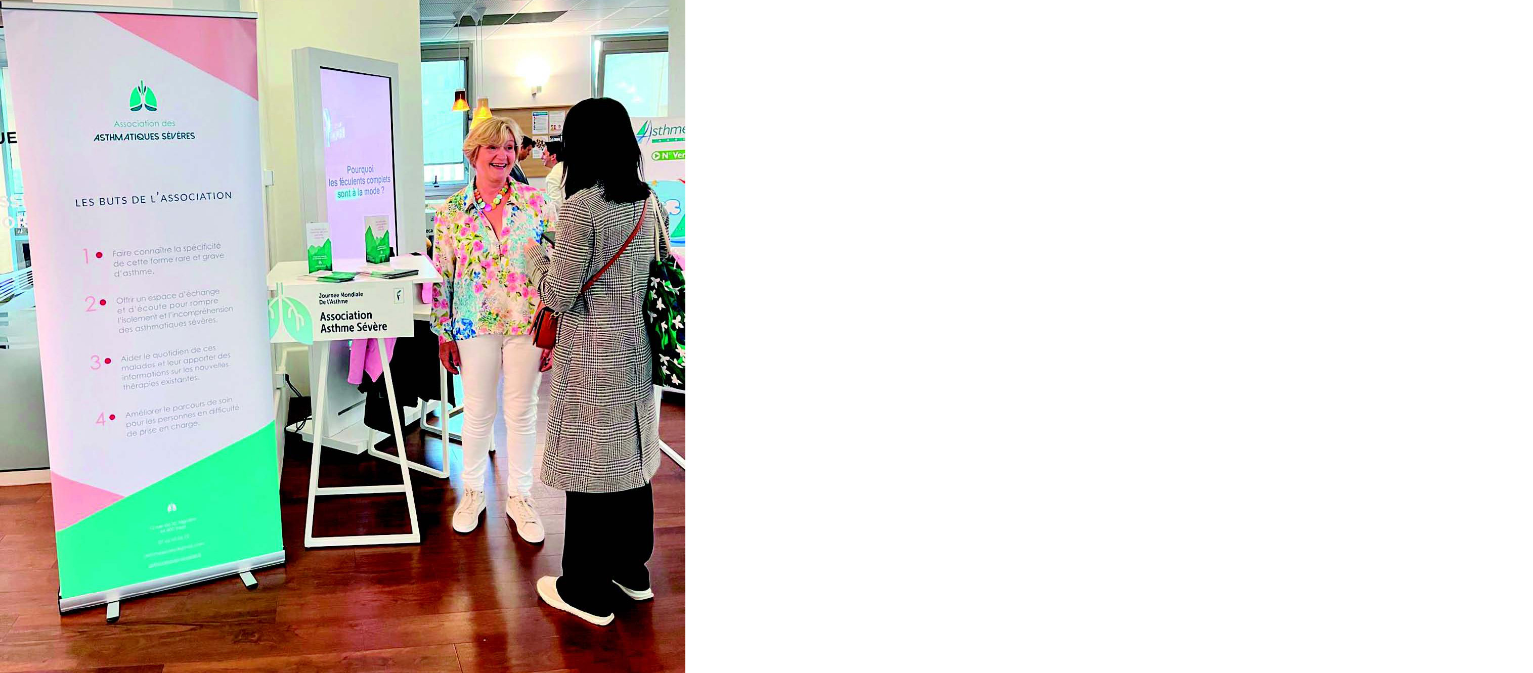 • Participer à des évènements publics ou privés afin de faire connaître notre association : JEAS, CPLF, rencontres organisées par le Collectif droit à respirer ou la FFAIR, …. Collaborer avec différentes entreprises afin d'apporter nos témoignages et notre expertise patient dans la création de solutions ou d'outils pour améliorer la vie des asthmatiques sévères.