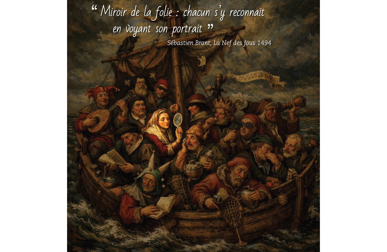 Le Musée du Louvre avait proposé du 16 octobre 2024 au 3 février 2025, une exposition sur les FIGURES DU FOU et de la folie du Moyen Âge jusqu'aux Romantiques. Le déroulé de la visite commençait par les illustrations de psaumes du XIVe siècle exprimant que la folie la plus grave était de se détourner de la foi de Dieu, puis passait par l'« Excision de la pierre de folie » de Hieronymus Bosch ou par le Portrait du fou regardant à travers ses doigts (image de l'affiche de l'exposition), pour arriver jusqu'à la figure de Philippe PINEL, médecin aliéniste précurseur de la psychiatrie, avec le tableau de Tony Robert-Fleury (1876) « Pinel délivrant les aliénés à la Salpêtrière en 1795 ».
